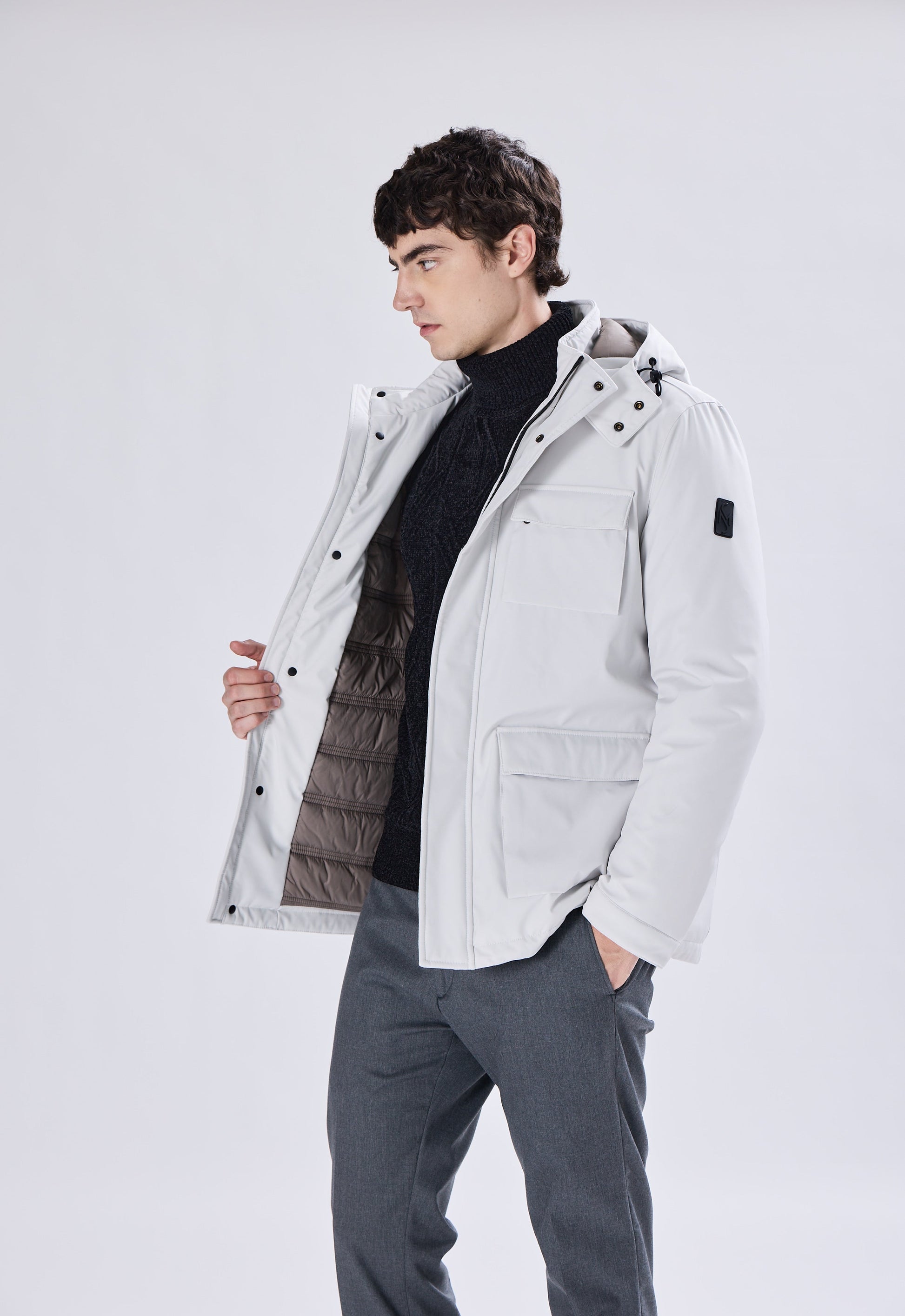 The safari jacket is designed to offer maximum warmth and protection without sacrificing style. Made from a water-resistant technical fabric, it's ideal for tackling the coldest and wettest days.